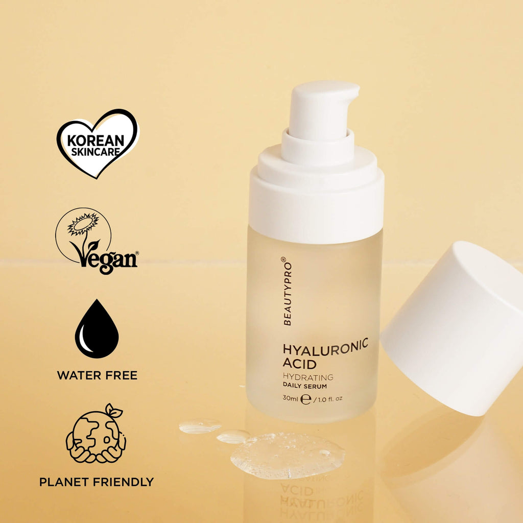 The BEAUTYPRO HYALURONIC ACID Hydrating Daily Serum uses natural ingredients to help lock in moisture and provide hydration, supporting a refreshed and nourished complexion.