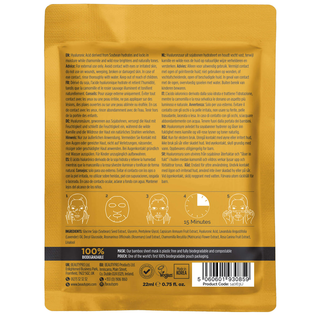The sheet mask uses our NEW 100% Biodegradable Packaging. Once opened, our new eco pouches begin to biodegrade immediately, taking just 1% of the time compared to traditional plastic. That’s 500 years down to 5 years with no trace of microplastics in the soil or sea! This environmentally friendly biodegradable material can be disposed of in general waste, recycling bins and home composts - it will biodegrade in all environments.