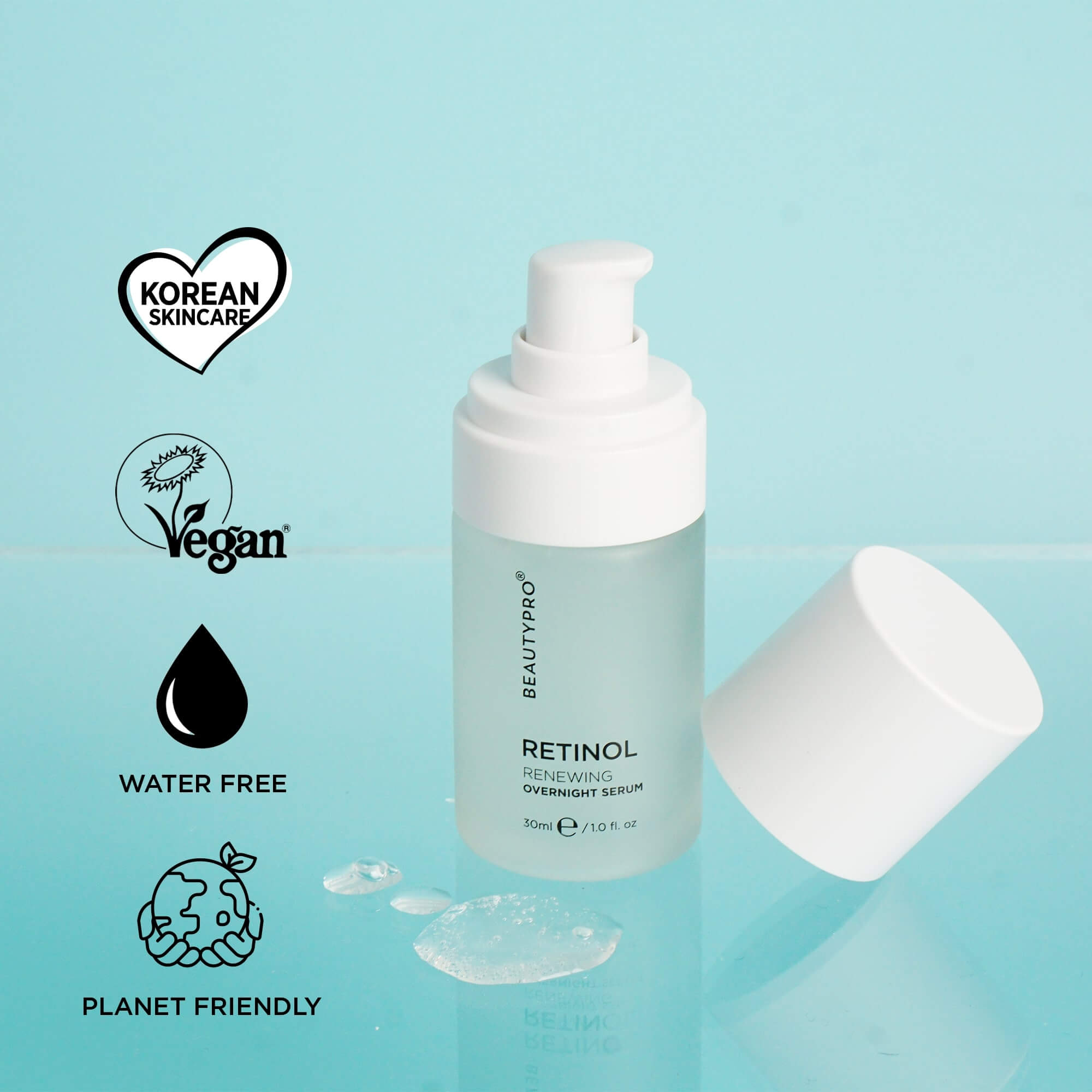 The BEAUTYPRO RETINOL Anti-Ageing Overnight Serum is a nourishing Korean skincare formula designed to support the skin’s natural renewal process overnight, leaving the complexion feeling refreshed by morning.