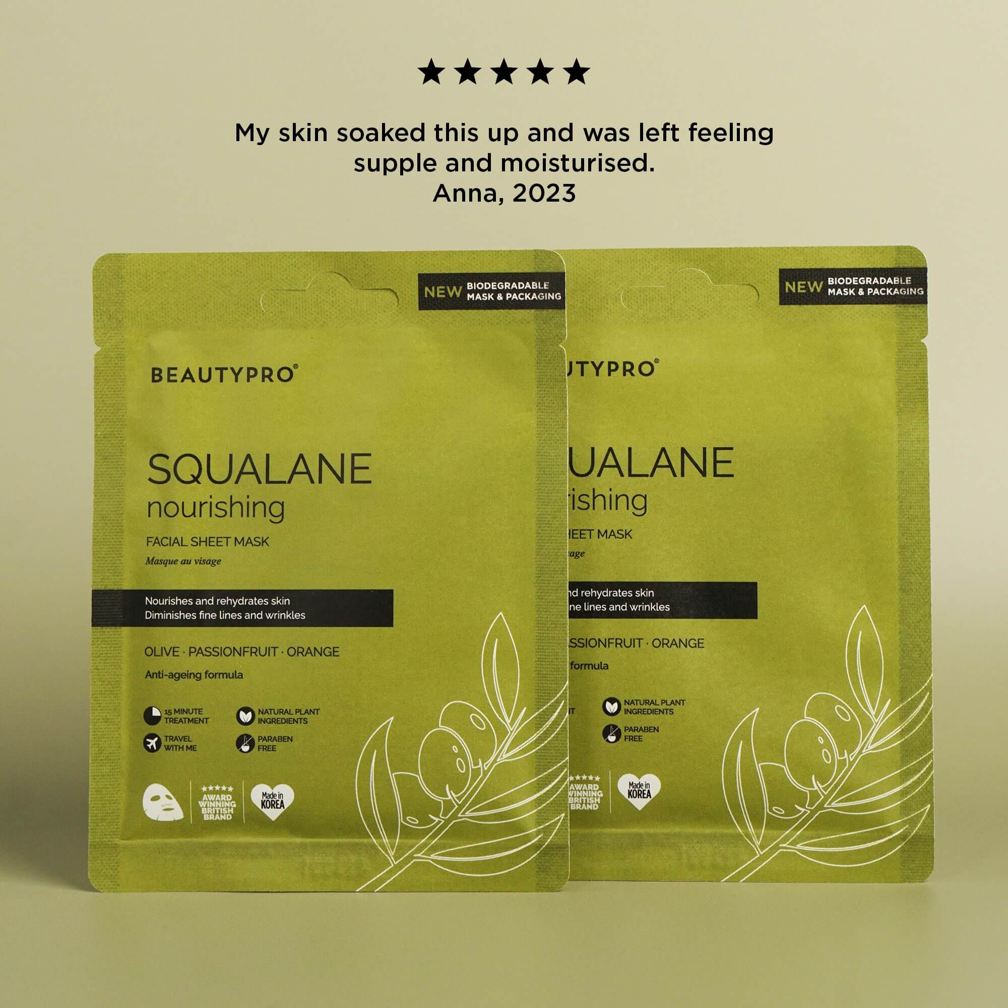 SQUALANE Nourishing Facial Sheet Mask - 100% Biodegradable