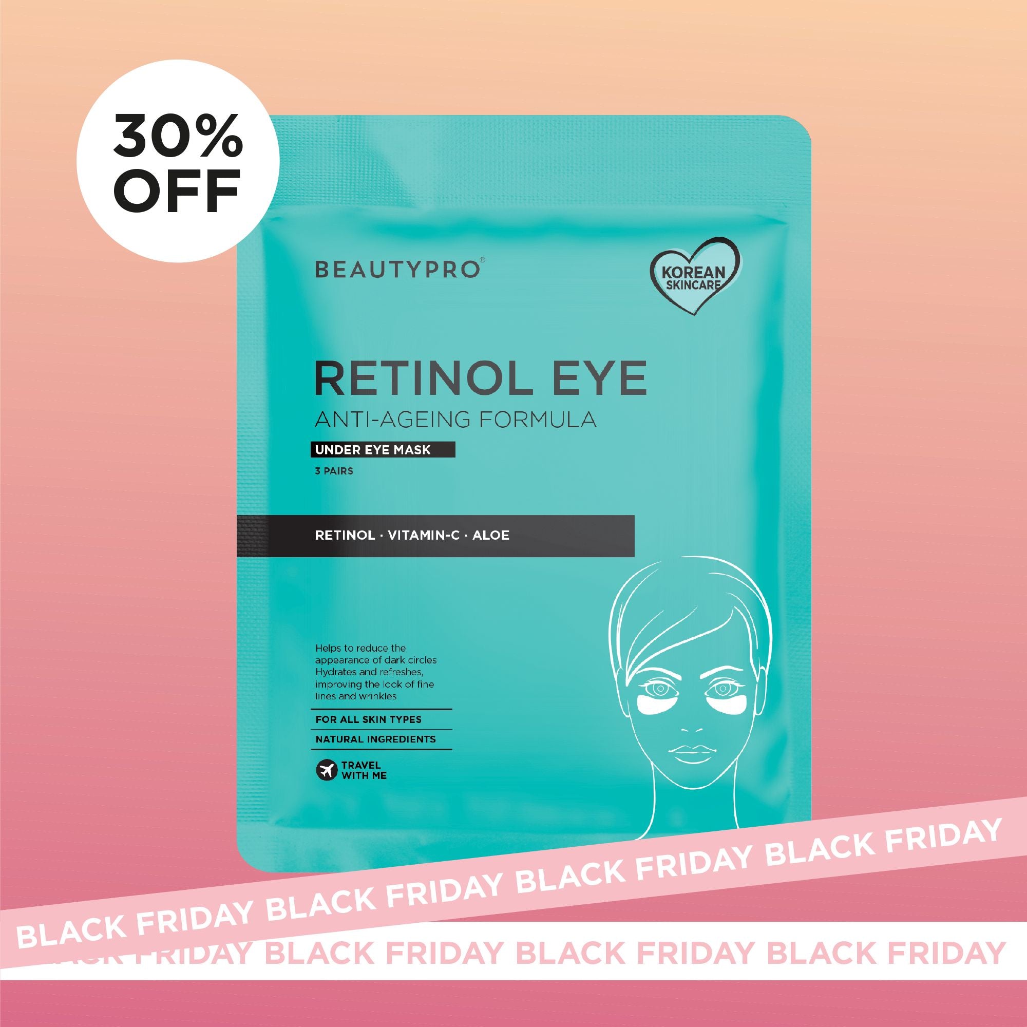 The BEAUTYPRO Retinol Under Eye Patches are designed to target the appearance of tired, ageing eyes. Infused with Retinol, this Korean skincare treatment helps to brighten dark circles, improve the appearance of pigmentation and smooth the skin's texture for a refreshed and youthful look.